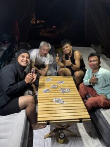 初めての社員旅行 投稿日: 2025年8月17日2025年8月17日 投稿者: isshin 毎日暑い日々が続いていて、 スタミナには自信がある当社のみんなも、 さすがに我慢の日が多くなっています。 こんな時は涼しいところに行きたくなりますよね!? そんなことで。初の社員旅行に行ってきました! どんなことしたいか?という社員会議の結果、 社長の趣味でもある釣りとキャンプになりました。 釣船に乗船して魚を釣り、それをキャンプ場で焼いて食べました。 お楽しみのBBQも開催して、お酒もすすみます。 「またみんなで行きたいね」との声。 楽しい社員旅行となりました。